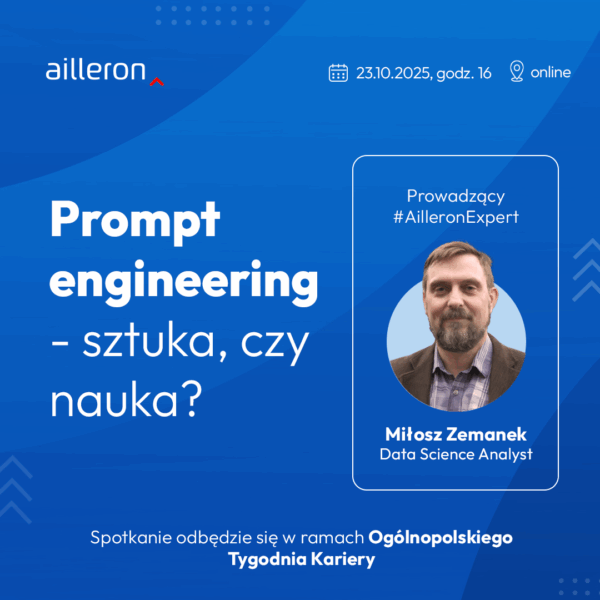 Expert z firmy Ailleron pokaże, czym naprawdę jest prompt engineering i jak przekuć go w realne efekty. Nie zabraknie czasu na pytania i wspólną dyskusję.