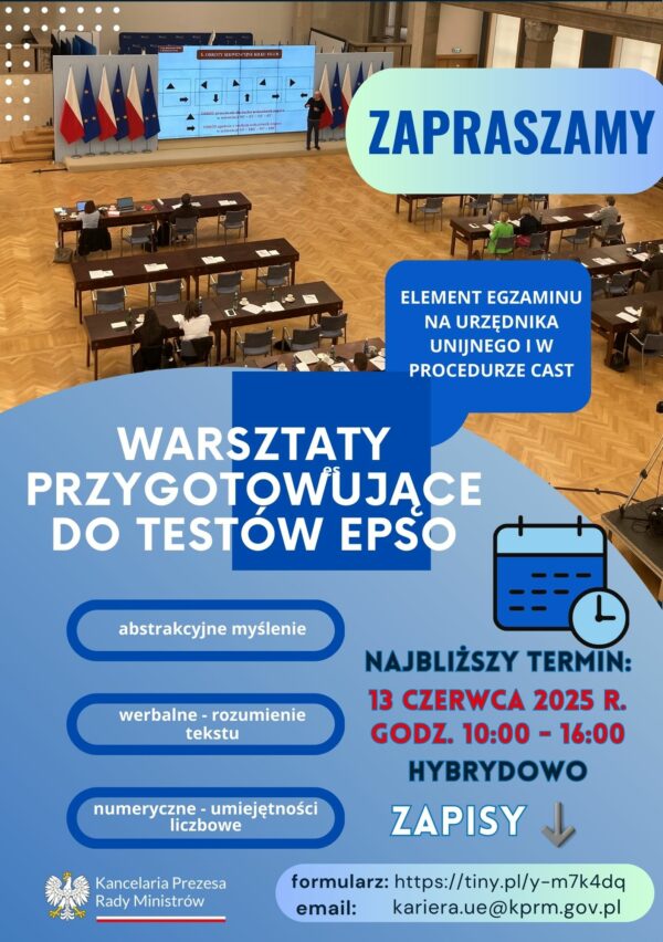 📧 Zapisy: poprzez formularz: https://tiny.pl/y-m7k4dq lub na adres: kariera.ue@kprm.gov.pl